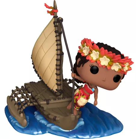 Moana est représentée avec son apparence iconique : tenue traditionnelle, posture déterminée et esprit d’aventure. Le design POP! stylisé capture parfaitement son lien avec l’océan et son rôle de navigatrice.