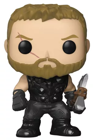 Thor est représenté dans son apparence emblématique de Avengers: Infinity War : cheveux courts, regard intense et équipé de son arme légendaire Stormbreaker. Le design POP! stylisé capture parfaitement sa puissance et son évolution dans le film.