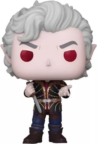 Astarion est représenté avec son apparence iconique : cheveux blancs, tenue élégante et regard perçant. Le design POP! stylisé capture parfaitement son charme vampirique, son intelligence et son côté manipulateur.