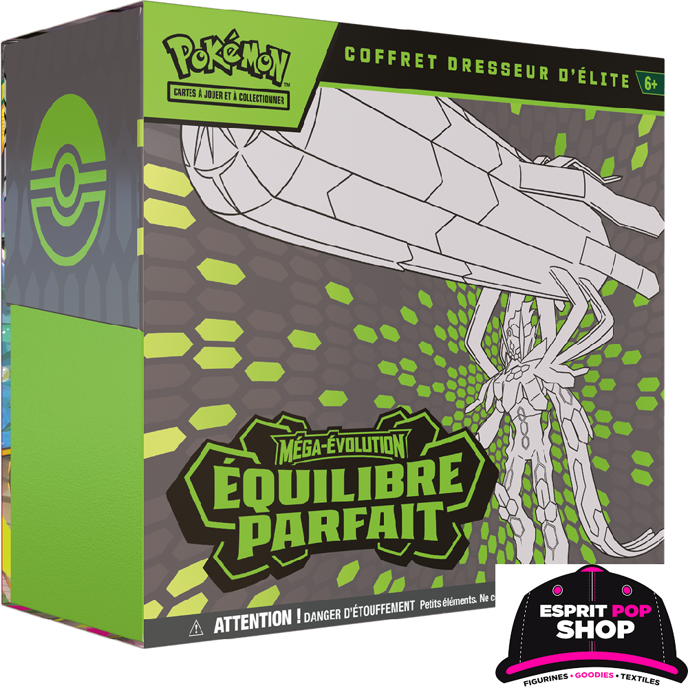 Le Coffret Dresseur d’élite Méga-Évolution – Équilibre Parfait du JCC Pokémon contient :