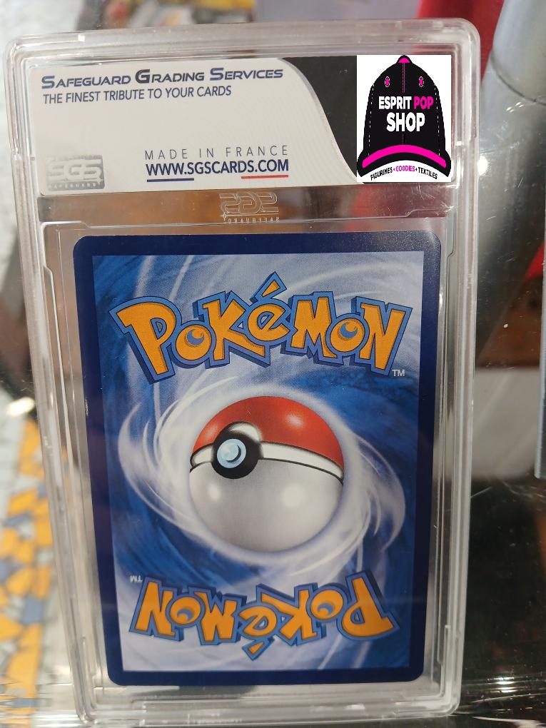 Cette carte a été certifiée par SGS (Safeguard Grading Services), le leader français du grading, avec la note de 9 NM/MT (Proche du Neuf/Neuf). Cette note garantit une carte en excellent état, avec une surface brillante, des coins nets et une superbe préservation globale. Le boîtier SGS “Made in France” assure une protection maximale contre le temps et les manipulations.