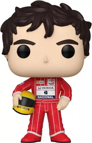 Ayrton Senna est représenté avec son look iconique, fidèle à son époque en Formule 1 : combinaison de pilote et casque emblématique. Le design POP! stylisé capture parfaitement l’aura du triple champion du monde et son héritage légendaire dans le sport.