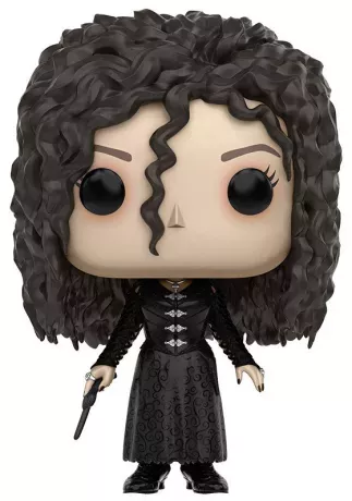 Bellatrix Lestrange est représentée avec son apparence iconique : cheveux noirs ébouriffés, regard intense et tenue sombre. Fidèle à son personnage instable et dangereux, le design POP! stylisé capture parfaitement son énergie chaotique.