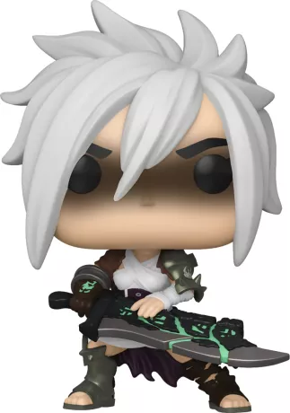 Riven est représentée avec son apparence emblématique : épée brisée et posture prête au combat. Le design POP! stylisé capture parfaitement sa détermination, son style de combat unique et son passé tourmenté.