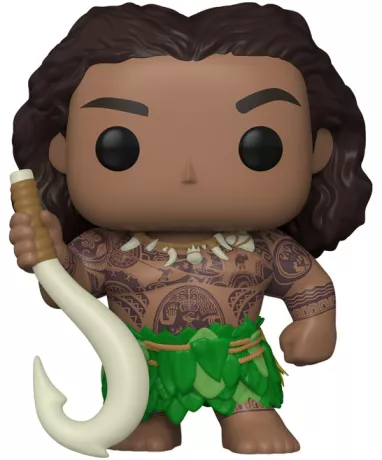 Maui est représenté avec son apparence iconique : corps tatoué, sourire confiant et hameçon magique à la main. Le design POP! stylisé capture parfaitement sa puissance, son humour et son rôle de protecteur.