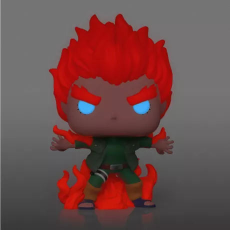 Might Guy est représenté dans sa forme ultime des Huit Portes Internes ouvertes, dégageant une aura de puissance intense. Le design POP! stylisé capture parfaitement cette transformation iconique, avec des effets visuels dynamiques qui illustrent la force démesurée du personnage.