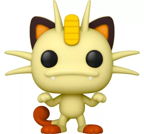 Meowth, connu sous les noms Miaouss (FR) et Mauzi (DE), est représenté avec son apparence iconique : sourire espiègle, pièce sur le front et posture caractéristique. Le design POP! stylisé capture parfaitement son caractère malin et attachant.