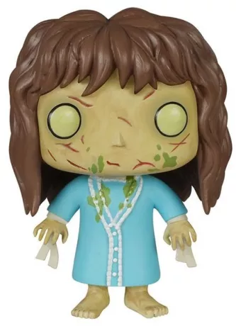 Regan MacNeil est représentée dans sa version possédée, avec son apparence iconique : regard terrifiant, peau marquée et expression inquiétante. Le design POP! stylisé capture parfaitement l’atmosphère sombre et dérangeante du film.